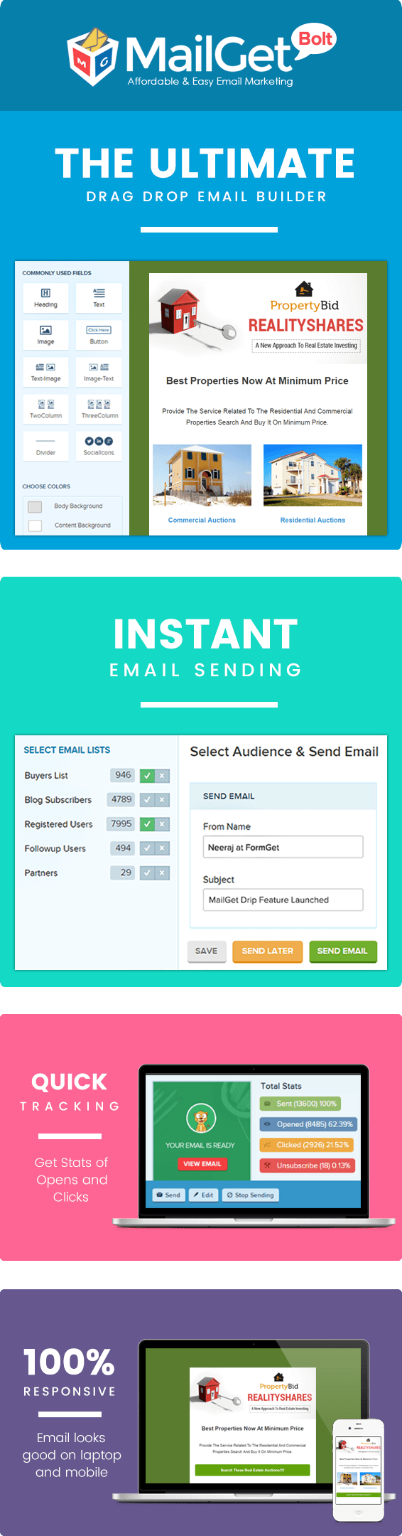 MailGet bolt is a responsive email marketing software that allows you to run 2 best campaigns. They are regular and drip respectively.