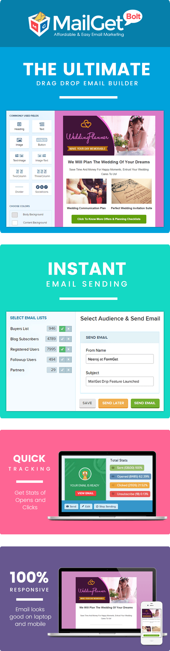 You need to find a responsive email marketing tool to supercharge your matrimonial trade. Here we are providing you with an amazing email marketing software known as MailGet Bolt, which will help you to grow your Email Marketing For Wedding Planner business. So that number of custmores book you.