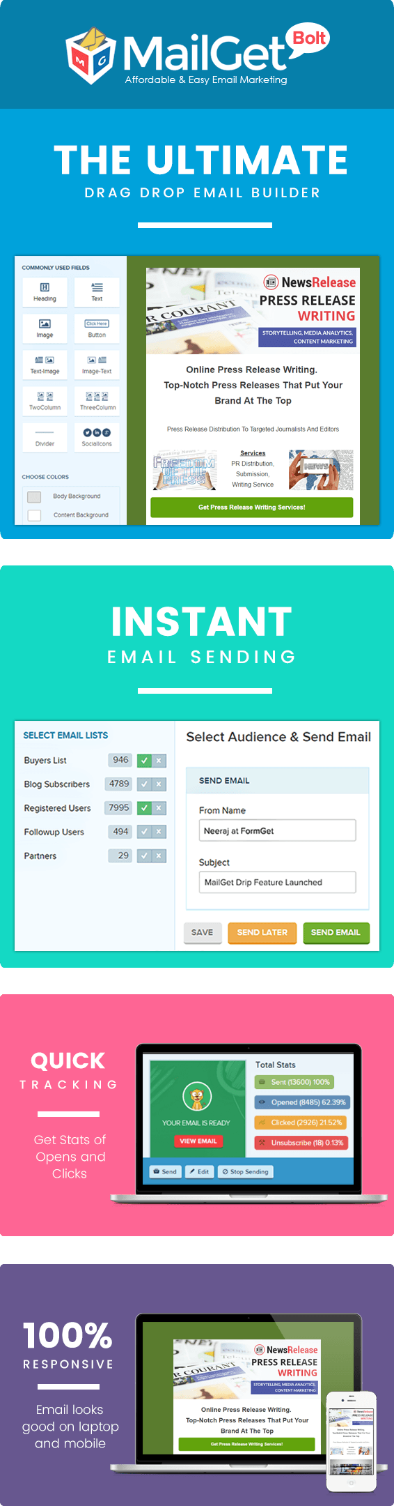 Drip Email Campaign: – If you are in the need to deliver emails at specific date & time, then you can use drip campaign feature. With this you can send pre-written emails about press releases automatically at scheduled time.