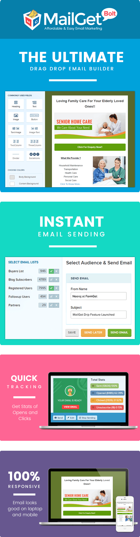 Email Marketing Service For Senior Home comes with an advanced feature that allows you to conduct different time scheduled and instant email campaigns to promote your elderly care.